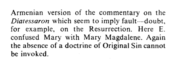 Ici, Ephrem a confondu Marie avec Marie-Madeleine. De plus, l’absence d’une doctrine du Péché Originel ne peut être invoquée.